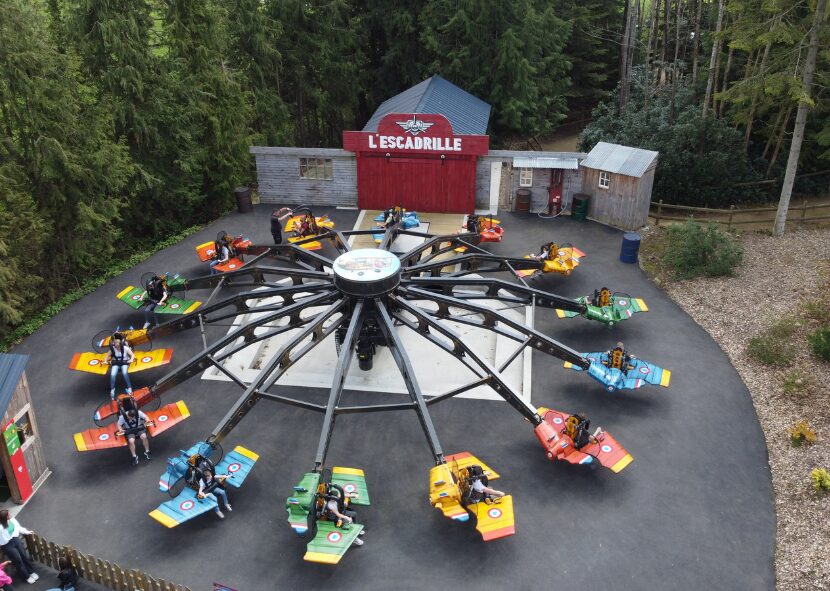 Le manège à sensations l’Escadrille est un Aerobat, son constructeur est Technical Park, fabriquant italien très connu dans le domaine des attractions. Ce manège a reçu l’award du meilleur manège à sensations fortes (Park World excellence award en 2018). Il est arrivé sur le parc en 2020, son chantier s’est déroulé pendant la période très particulière de confinement de mars – avril 2020, liée au Coronavirus. Les premiers visiteurs ont pu le tester dés la réouverture du parc le 6 juin 2020. Le record de 66 vrilles en 2020 est détenu par un visiteur 🙃.