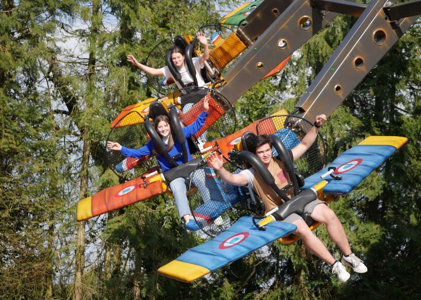 C’est parti pour un vol à 15 mètres de haut et c’est vous qui pilotez en inclinant les ailes vous ferez des vrilles, tête en haut… tête en bas !
