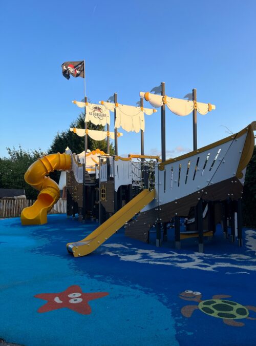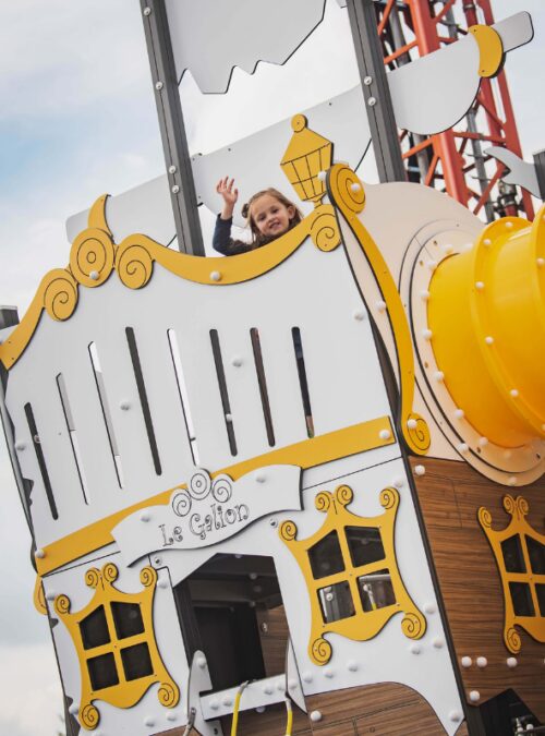 Venez découvrir l’aire de jeux le Corsaire ! Dans un décor pirate, les enfants sont prêts pour grimper, sauter, glisser!!! Ce bateau géant présente de nombreuses activités, filets, toboggans, escalade… pour un maximum de rires. C’est le moment pour les parents de faire une pause ou de les aider à grimper !