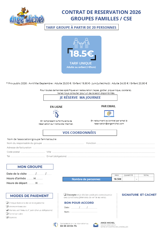 Tarif Groupe à partir de 20 personnes : adultes et enfants confondus