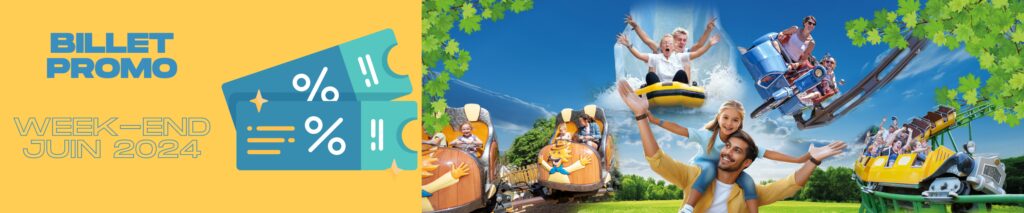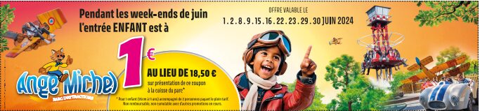 Pour l’achat de 2 billets Adulte 2024– Spécial Week-ends de juin et 1 billet Enfant 2024- Spécial Week-ends de Juin vous bénéficiez de 17.50 € de réduction sur une entrée enfant avec le code promo : WEJUIN2024